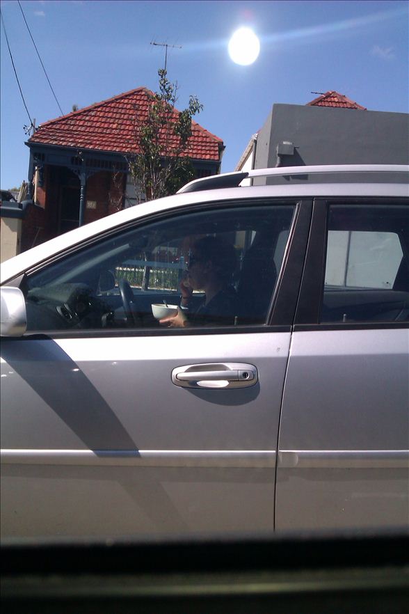 Everyone has stories of people doing stupid, weird, or ridiculous things in traffic, but driving along Crystal Street, Petersham, the other day, this woman caught my eye: