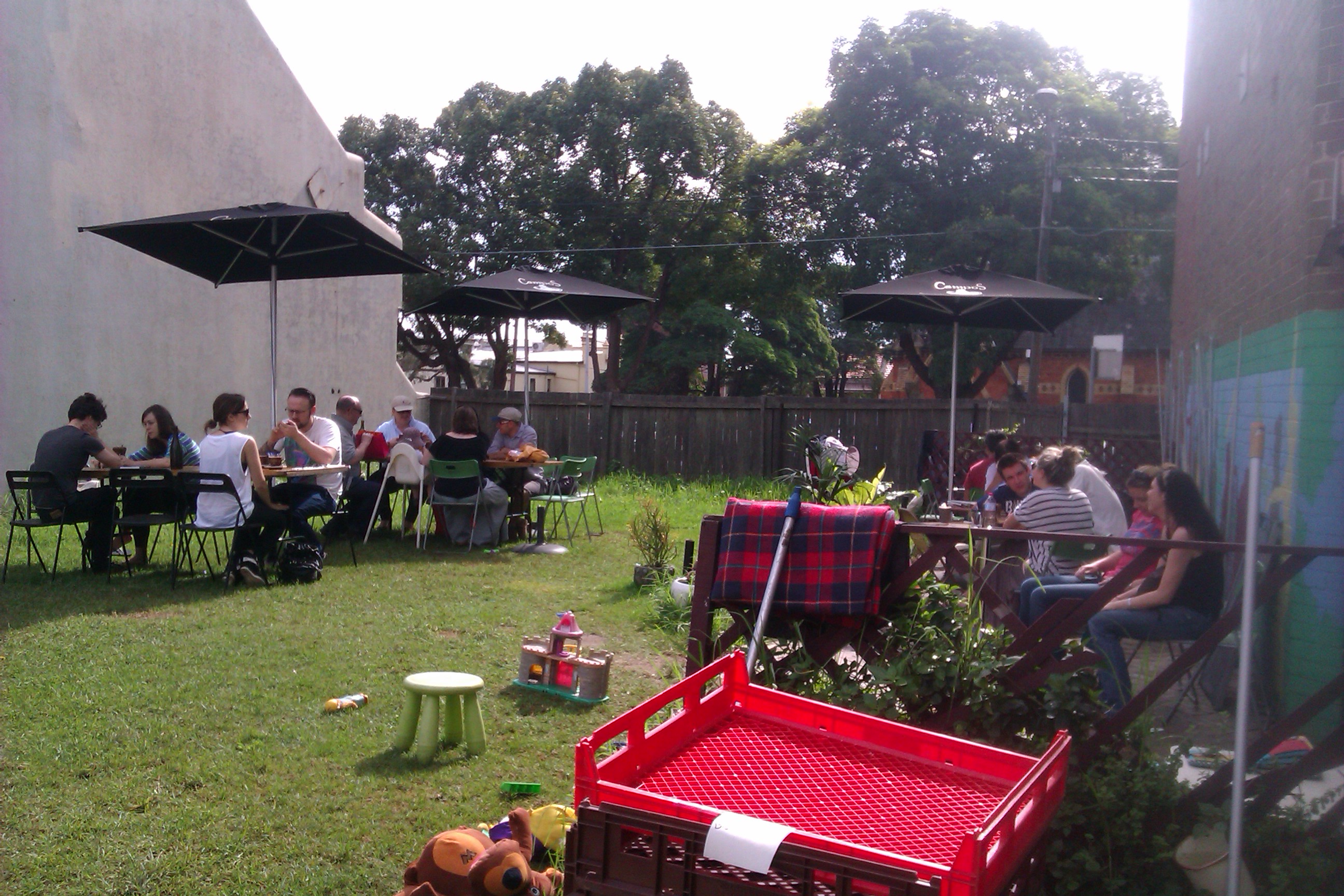 Situated in a little corner shop on a rather shabby stretch of Stanmore Road (it’s a pitching wedge away from the local titty bar), it’s definitely got its charms. There’s a big garden out the back with a play area, which was popular with the local aging-hipster parent population, and we watched a number of mums in their Thai fisherman’s pants chase after their sprogs while calling out their Newtown Names. It occurred to me how much the parents of toddlers are like immigrant cabbies: Once upon a time they may have earned advanced degrees, but in both cases fate has handed them got full-time jobs that involve chasing after incoherent, irrational humans who puke and wet their pants.