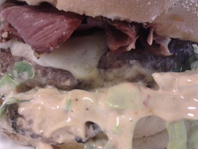 I’m not sure what twisted genius came up with this, but in broad terms, think of a bacon cheeseburger, but in place of bacon put a big handful of pastrami. And add some spicy mayo. And some greens. And a really big, thick bun that’s still tender, doughy, and more-or-less keeps the whole thing together, though you are forgiven for abandoning ship for a knife and fork half-way through. Given Sydney prices, the $13.50 is still kinda-sorta reasonable (the upside is you won’t want much for dinner) even if the $4.50 they hit you up for a takeaway Coke is extortionate. It’s not quote $5 for a pretzel at the Duff Brewery, but still.