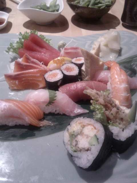 I was thinking about this in the hours after a lunch at Masuya, a nondescript Japanese diner in O’Connell Street in the CBD. Several years ago I worked just around the corner from the place, but had little idea it was there. The entrance is discrete, and diners have to descend a flight of stairs that’s tucked around a corner. From the outside it looks like the currency of the realm might just be “Dancer Dollars”. Never mind, it’s worth a visit – indeed, becoming a regular. The sushi is fresh, luscious, and diverse; my companion’s tempura chicken bento box almost gave me a case of menu envy. Service was friendly, brisk, and efficient with an eye towards keeping tables turning over and getting the Salarymen back to work.
