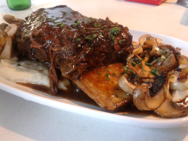The food is great too: Crispy whitebait fritters with a zingy dipping sauce. Perfectly-cooked, plump, buttery Queensland scallops with chorizo. A beef rib straight out of the Flintstones that we were told had been braising since 8am the previous morning. A lovely hunk of pork belly. And in a concession to the “dude food” trend (feminism may have pushed men into the kitchen, but we’ll be damned if we won’t have a good time with it!) deep-fried soft shell crab sliders. Happily, we noticed that even with this concession to hipness, the staff was mercifully free of the tatts, tramp stamps, and tough stickers so ubiquitous in the restaurant trade (haven’t these youngsters ever heard of gravity?). Even more happily, having stuck to the sparkling waters, we got out of there for about $50 a person. Not cheap eats, but not too dear either, and I barely needed dinner.