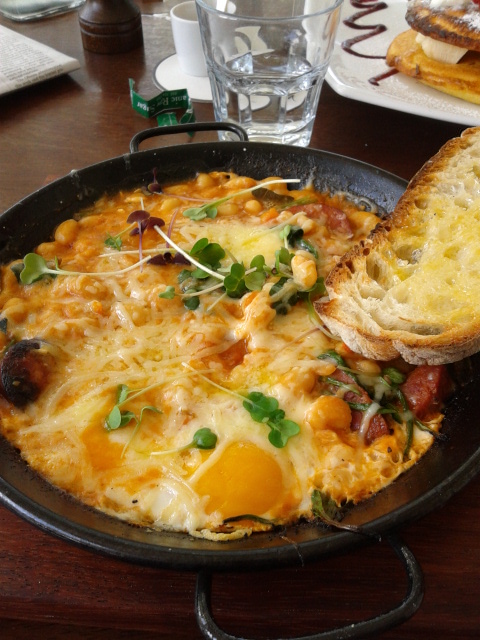 So it was with some trepidation that we went back for breakfast a couple of days later. It turns out that Vivo, despite its more foxy intentions, is more of a hedgehog, and what this particular hedgehog knows well – really well – is breakfast. So well that we went there three, maybe four times, over the course of the week. I could eat their “baked beans encôtte” every morning: eggs baked in Vivo’s own house-made cannellini beans, chorizo, all finished under the salamander with a heaping of gruyere. The sausage omelette – more of a frittata – will keep you going all day. Hotcakes: similarly great, though they skimp on the syrup and you have to go back to the kitchen to get more. They also make a killer bloody that includes a dash of port, something I may have to consider in my own recipe.