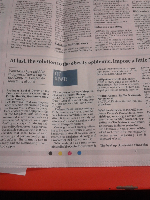 The Australian has picked up the Prick’s thoughts on Prof. Rachel Davey of CRAP Health: