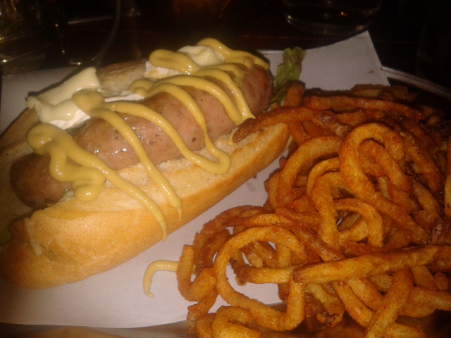 Not that this was a bad thing, necessarily. The barmen here know what they’re doing. Sydney’s bars were a great disappointment when the Prick picked up and left New York and it is great to see so many interesting drinketerias opening up around town. Stitch is a lovely joint, all little rooms and nooks, and if you get there early enough you can get a table without too appalling a wait. Which you will want to do, because they also have a fine little kitchen turning out gourmet hot dogs and burgers and tacos, all cutely named and well-prepared (the “French Poodle”, a Toulouse sausage with melted brie, was delicious, as were the pulled pork tacos, which were intelligently spiced and made themselves heard without screaming to palates numbed slightly by the booze).