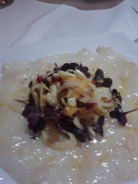SCOB Chef Rhys Ward put together a bit of a tasting menu (note we were not lured in with freebies, and the Prick paid for all his own food and drink including a lovely bottle of Sancerre and an utterly gratuitous cognac at the end of the night) and festivities kicked off with a lovely salmon tartare, light and refreshing though more refined than what one normally thinks of as “bar food”. Just-opened Sydney rocks needed no dressing at all and were gone in sixty seconds: plump, steely little creatures that rewarded chewing with briny creaminess. This site claims some credit for the next course, deep-fried Coffin Bay oysters with a wasabi mayo, but really, how can you go wrong? We didn’t.