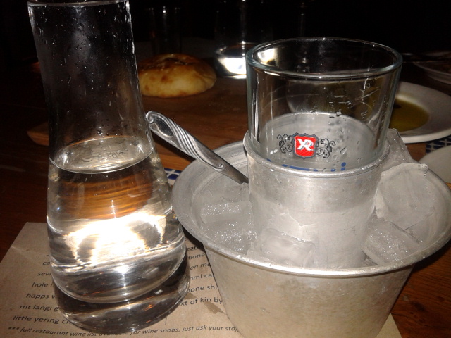 Now  the trick to this sort of thing is to not think too hard about it. Just as Peter Pan told his charges that the moment they doubted their ability to fly they would crash, the moment you doubt your ability to choke down this sort of thing, well, you choke. Fortunately, I held it together long enough to take my medicine and follow it a heady draught of raki, ready to move on to richer and more savoury – in every sense of the word – dishes. Yes, some people love this sort of thing. And some people don’t feel they have to eat things on a dare, to be polite, or to show up those more demure. I am neither of these sorts of people, as it turns out.