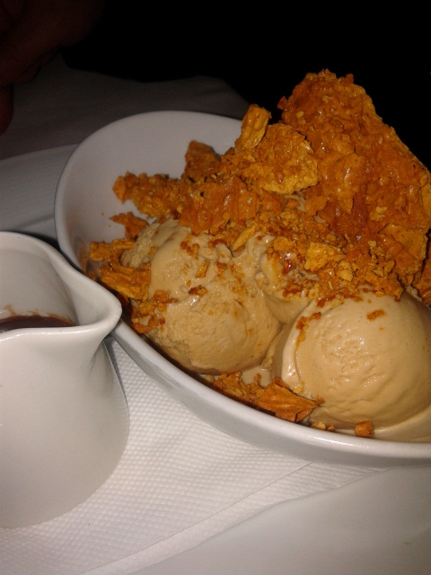 I say odd because service was otherwise friendly and knowledgeable, professional and almost European, yet without any hint of aloofness. A brief but solid wine list, not unreasonably priced and clearly put together by a sommelier who knows what he’s doing was a big help as well. Our foursome had a great time on some Austrian grüner veltliner and a luscious but silky Chateauneuf-du-Pape. Some Paul Girard cognac, after some very redeeming desserts (honeycomb ice cream, that is all one needs to say) and a decent little cheese plate, eased the anxiety over the approaching bill which all in all was pretty reasonable, coming in well below ICAC’s threshold for “lavish”.