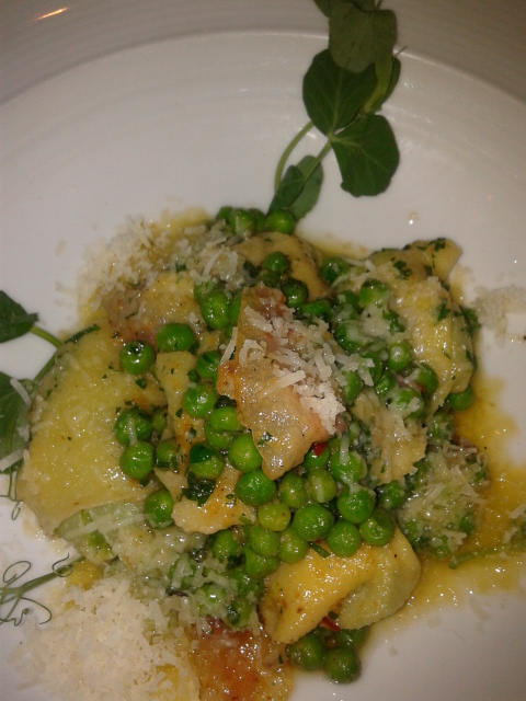 We liked the looks of the menu and the general vibe of the place – cozy and informally elegant, it’s a clubby little Chairman’s Lounge of a room tucked off to the side of the pub’s more raucous halls – but a delicate and well-composed tortellini of peas starters with guanciale, lemon, and chili was artful on the plate yet didn’t go the distance on the palate. There was no heat to be found; slim shavings of pork weren’t present enough to add richness or saltiness and did nothing to lift the dish. A great idea, the tortellini were gossamer thin and delicately constructed, the peas snappy, but somehow it just never came together.