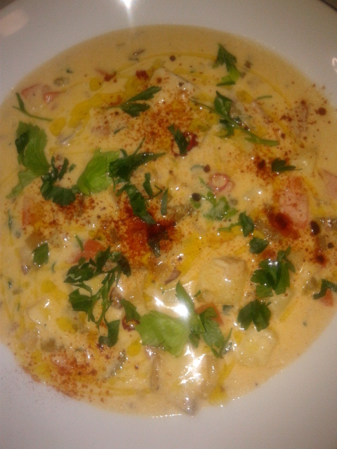 There’s a few tricks involved but the key is really letting the fish steep in the milk and cream in which you boil the potatoes, which ensures that the flavour really comes through the soup. Good fish stock is also helpful, and there are decent ones on the market now so one need not fiddle around with this on a weeknight.