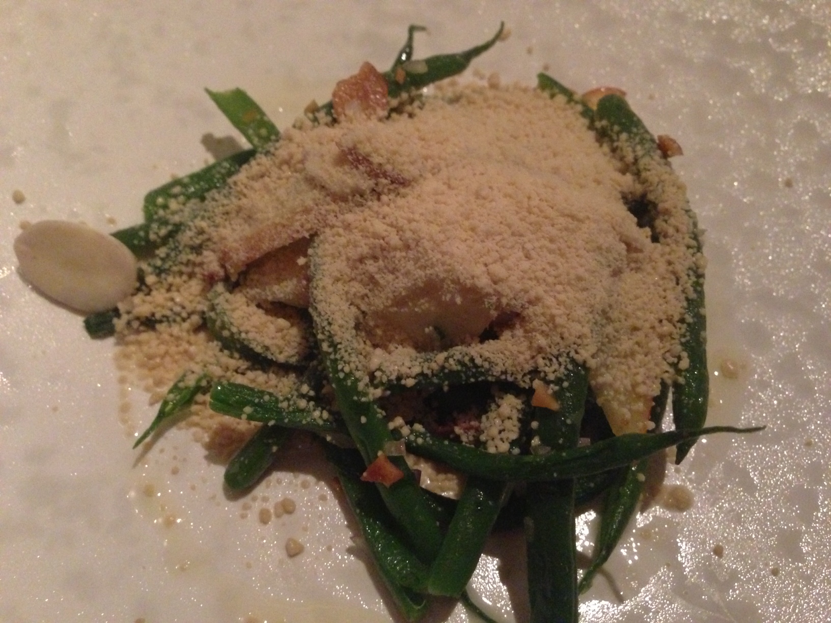 Green beans with peaches and shaved foie gras are next and work a treat, the foie not overpowering but rather melting into the dish and on the tongue in all sorts of sexy and silky ways that should not be pursued any further on a family site.