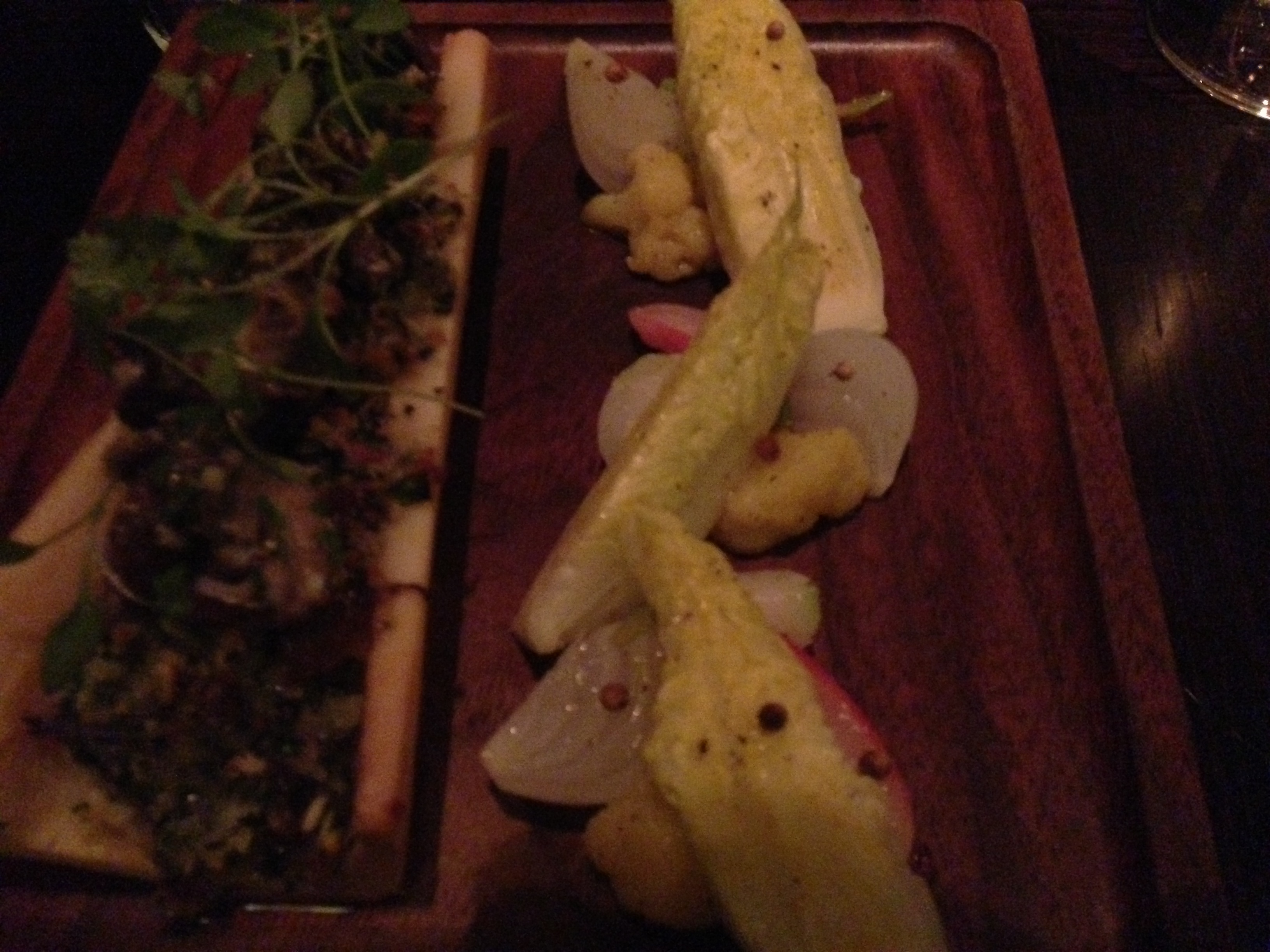 Other dishes nod to the past but are more firmly anchored in the present and don’t overdo the history lessons. This isn’t an American Express Platinum field trip to Ye Olde Georgian Towne, it’s more an excuse to delve into the way-way back catalogues of British cookery and remaster old numbers by way of the immersion circulator. “Salamagundy” comes out with a combination punch of bone marrow and chicken and salsify and big, sharp, crisp flavours, tied together with a hint of mace if memory serves. “Powdered duck” is deceptively simple but the most tender breast of bird imaginable. Mrs Prick’s fish comes with an orbit of garnishes including little winkles which sing of the sea and make urchins look tame by comparison.