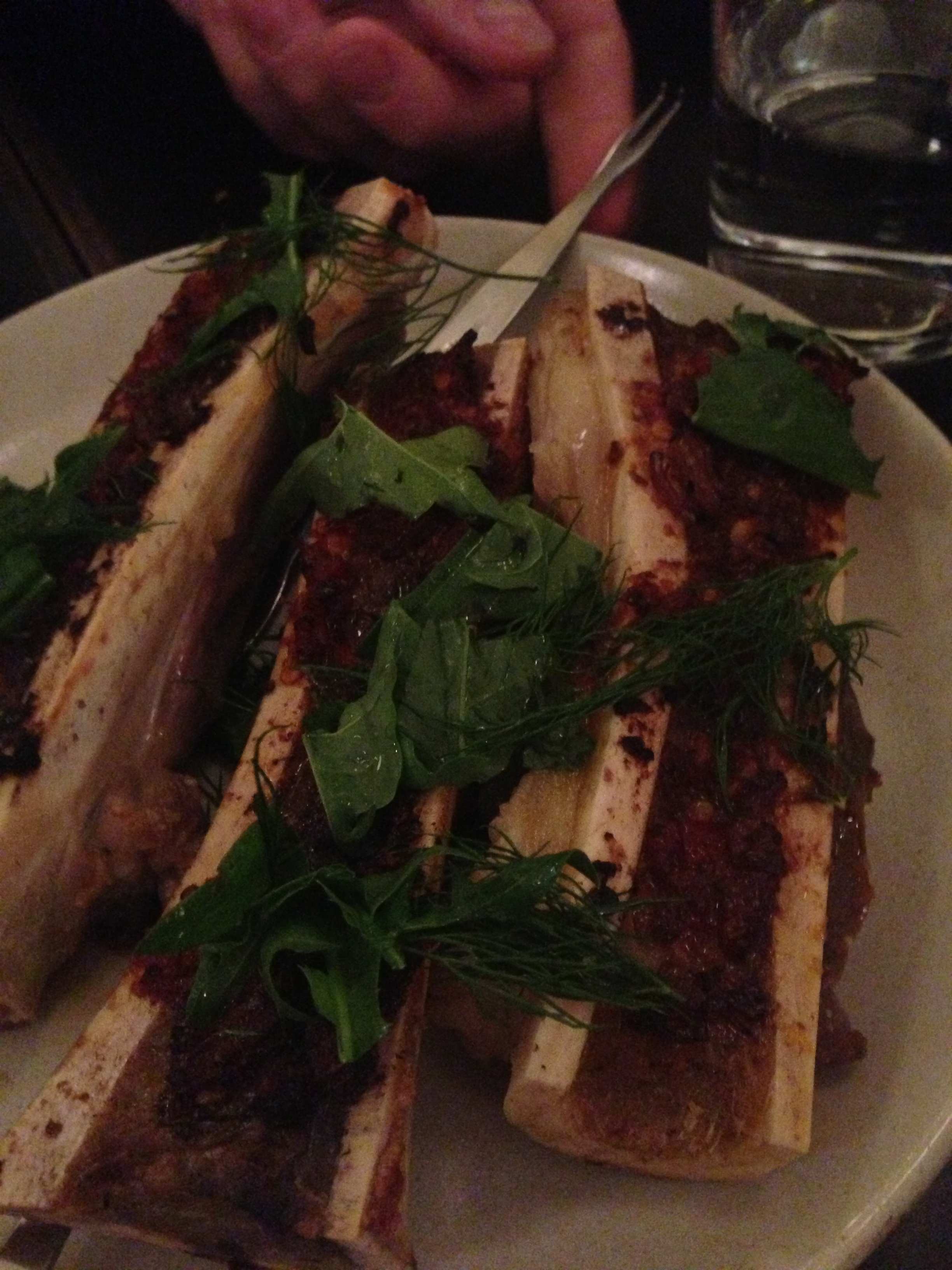 Marrow – an ingredient of the moment whose time has happily damn well come – at ester is much talked-about among the fooderati, and deservedly so, served as it is in massive split, roasted bones right out of The Flintstones and drizzled with XO chili sauce. The quivering contents are scooped in great hunks reminiscent in texture and jiggle of pan-seared foie gras  onto slabs of hearty woodfired bread.